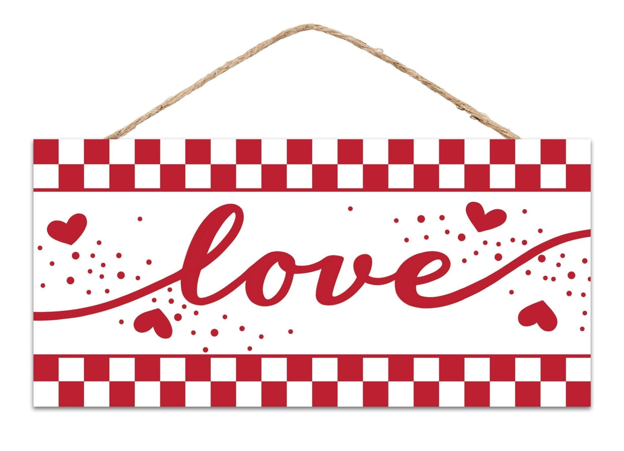 12.5" Love Checkerboard Hanging Sign – Red & White | AP742754