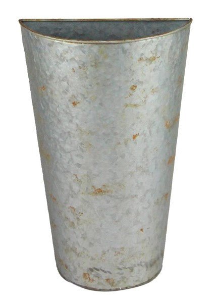14"H x 8.75"W Antiqued Galvanized Wall Vase - KE1554 - White Bayou Wreaths & Supply