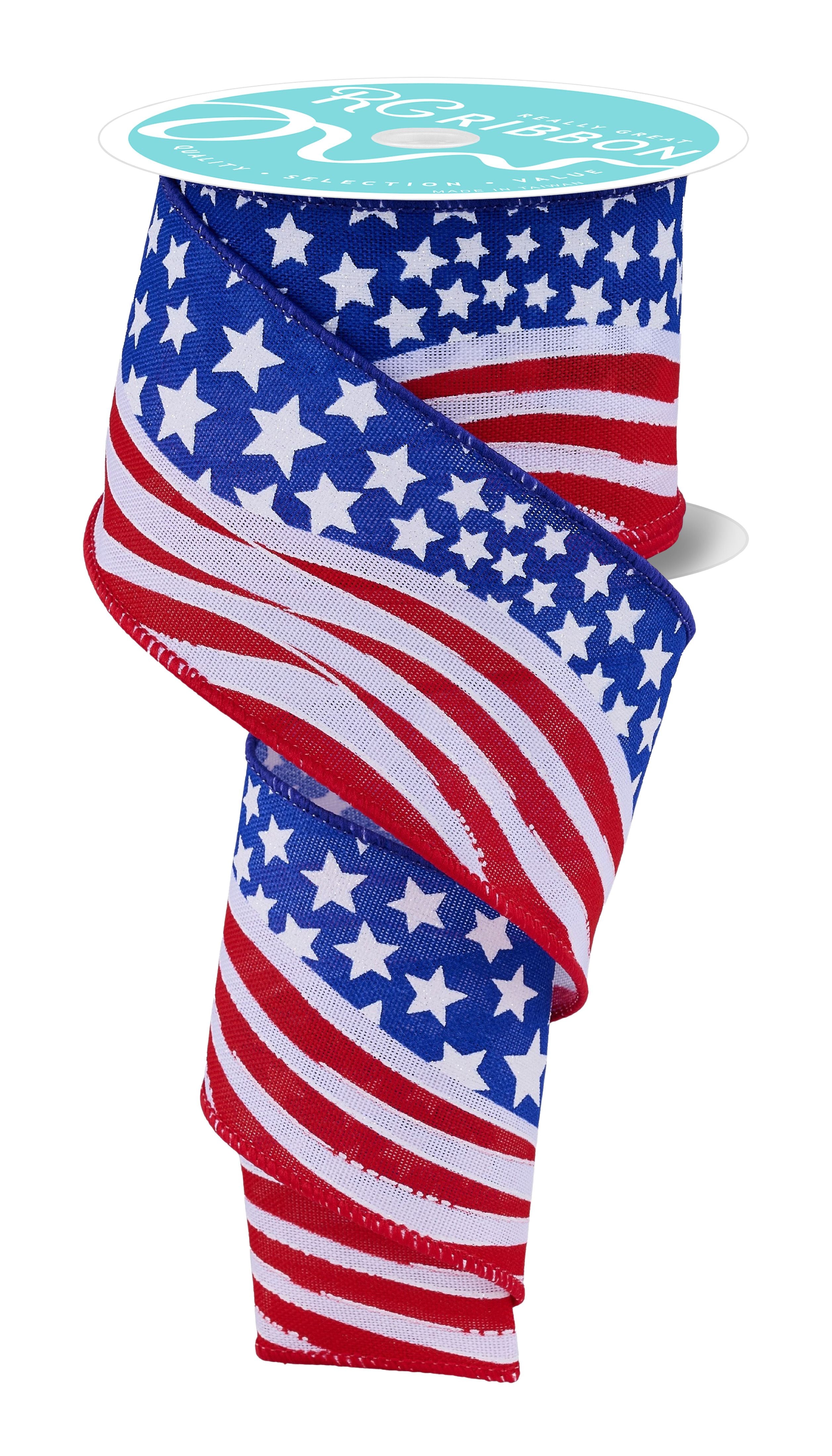 2.5" Wavy American Flag Ribbon Red White Blue 10 Yard Wired Ribbon | RGH1169A1