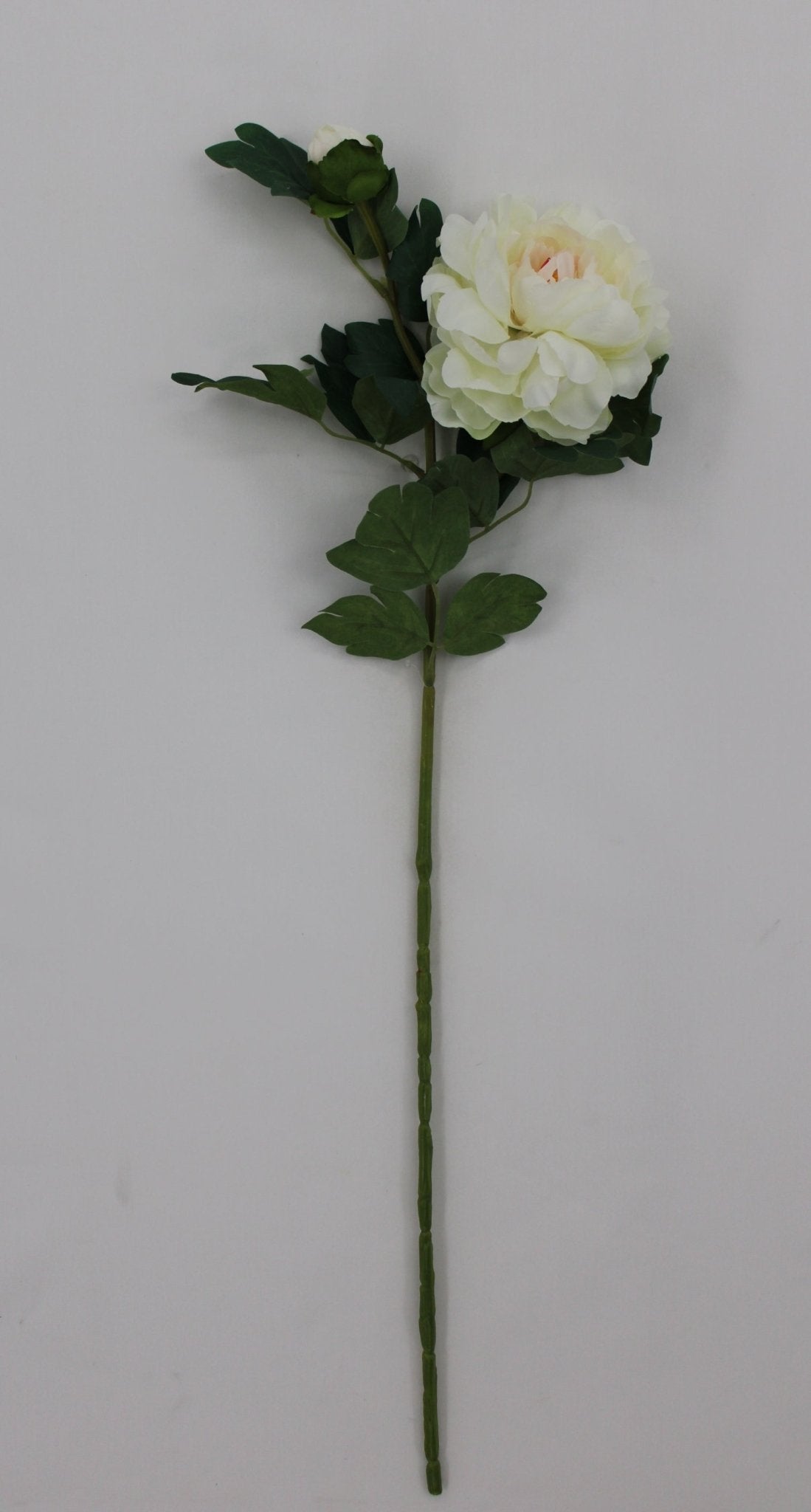 Add timeless elegance to your floral designs with this 30-inch Cream Peony Spray. Featuring a beautifully layered peony bloom with a coordinating bud and lush green foliage, this stem creates a full, natural look that works beautifully in both classic and modern arrangements.