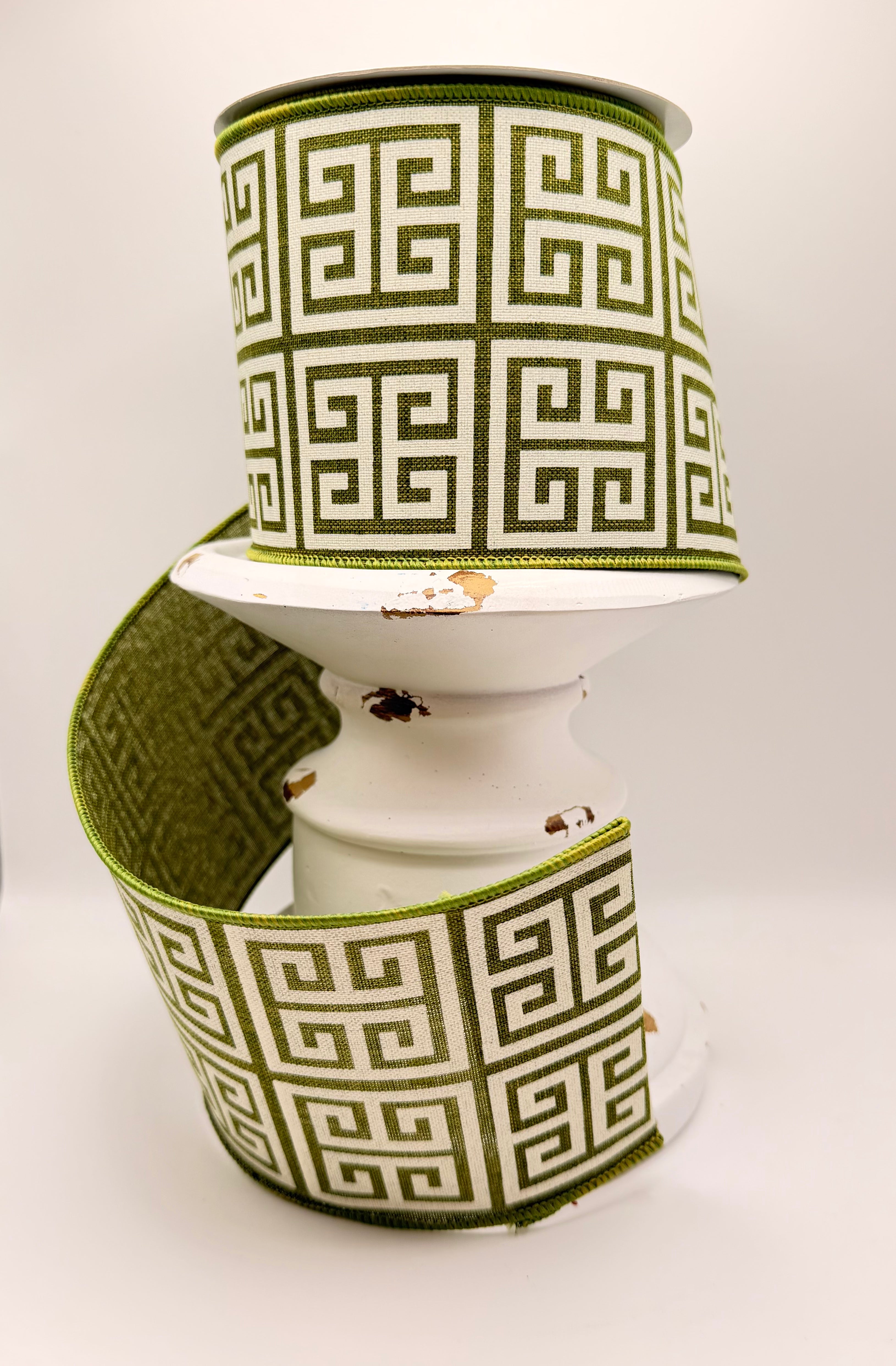 Perfect for everyday wreaths, spring décor, St. Patrick’s Day designs, or classic home décor themes, this Greek key ribbon adds a stylish and timeless element to any project.