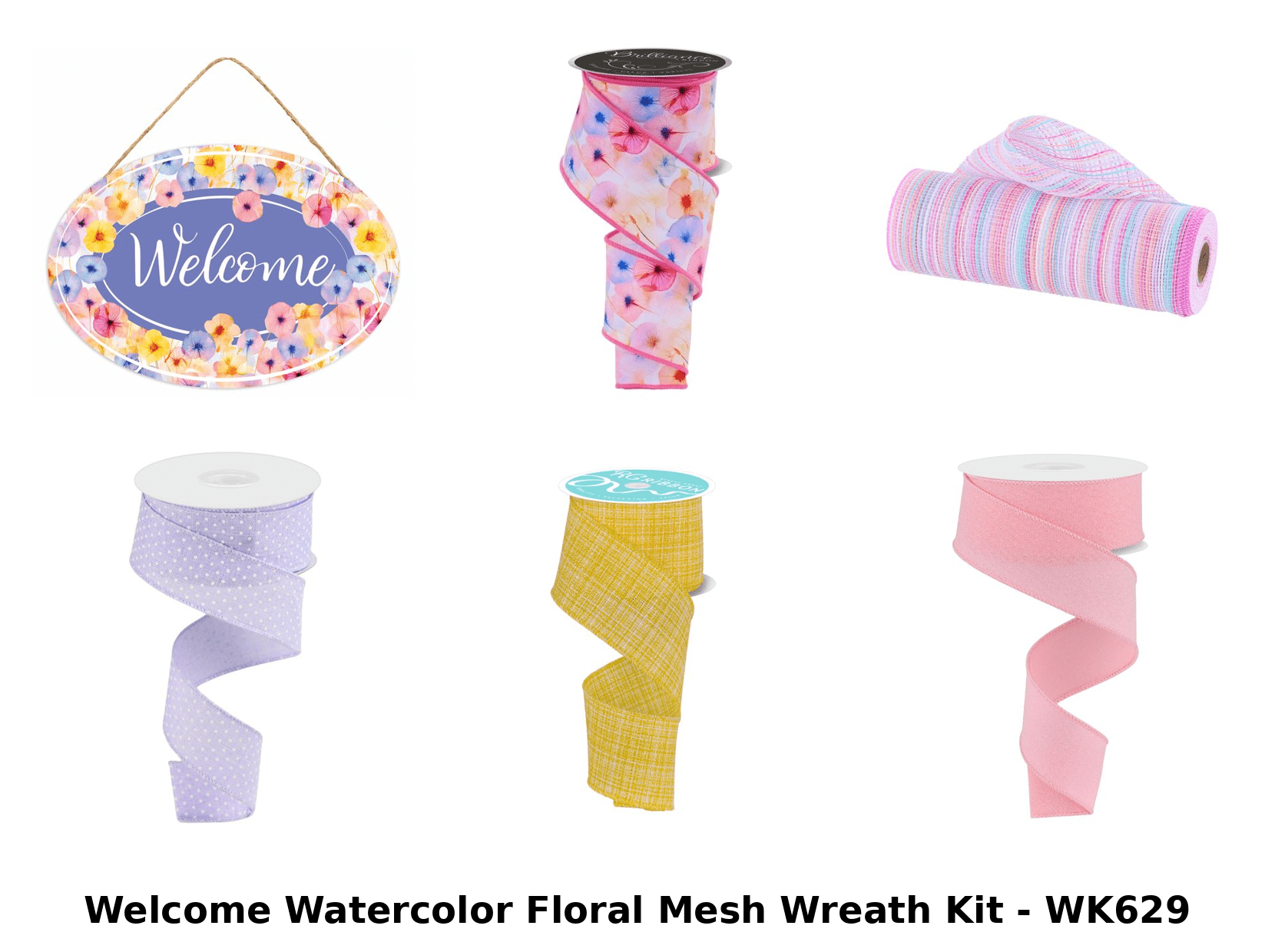 Welcome Watercolor Floral Mesh Wreath Kit Includes:
