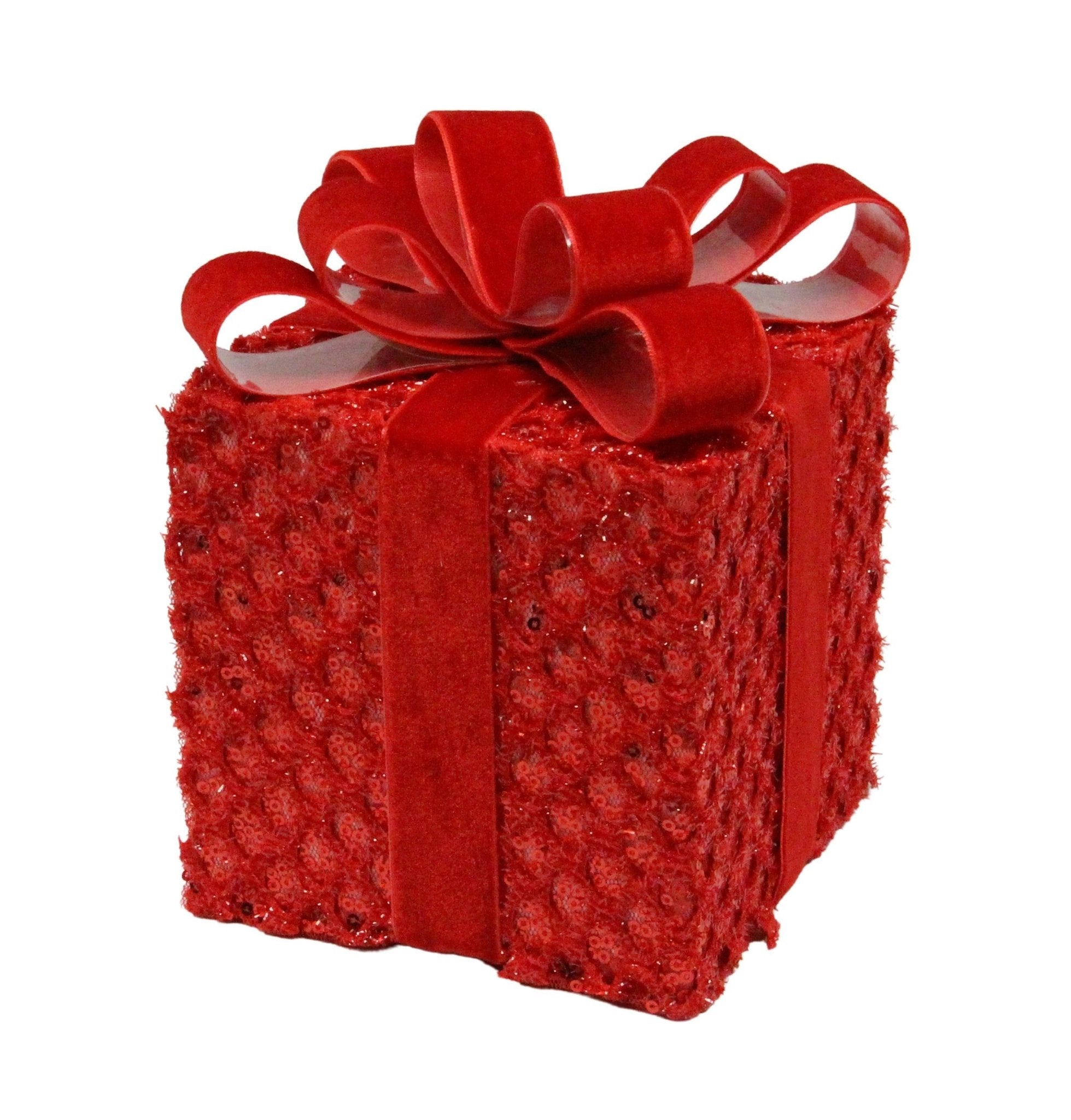 6.75"H x 4.75"Sq Sequin/Tinsel Gift Box: Red | XC837424