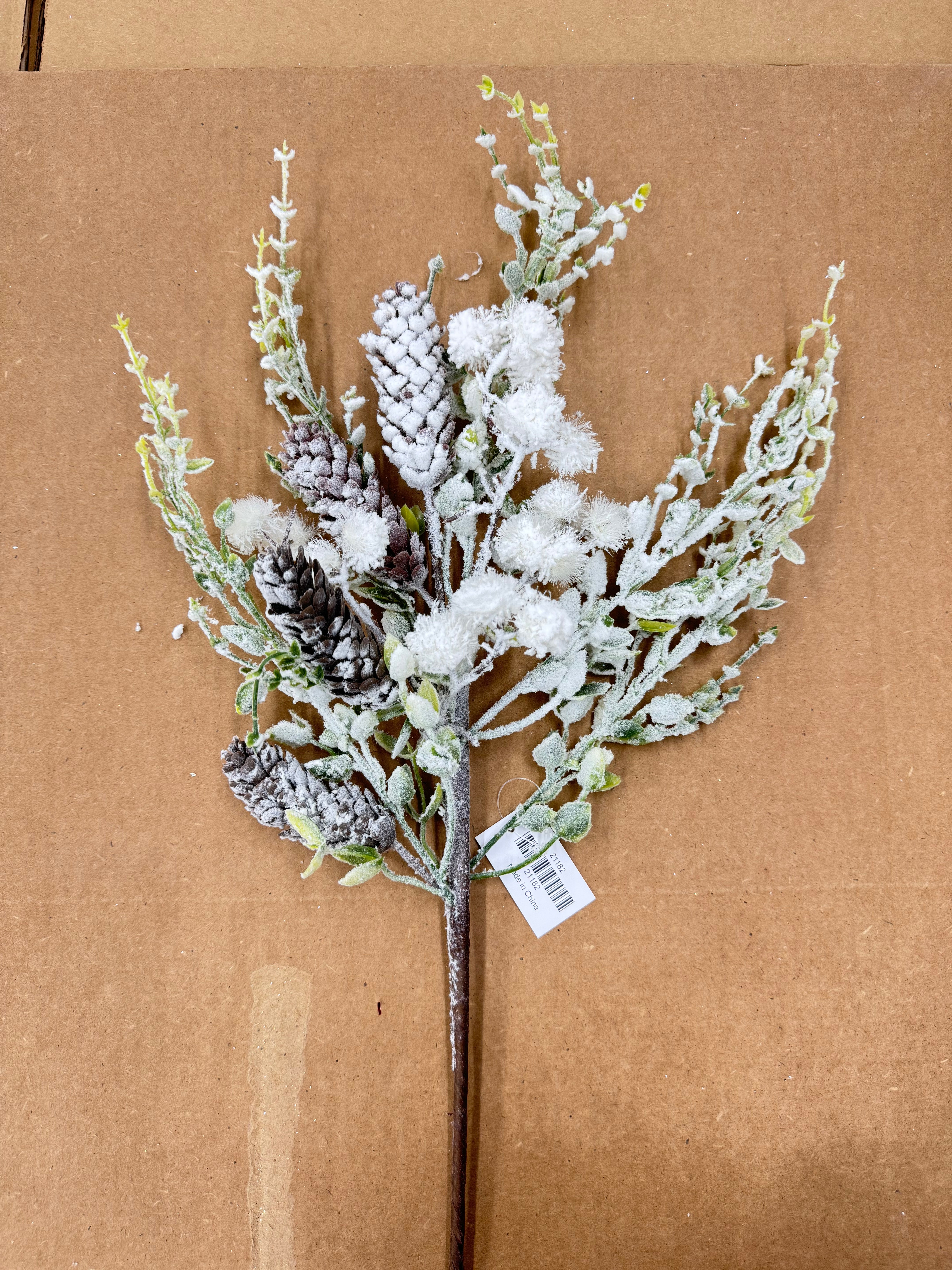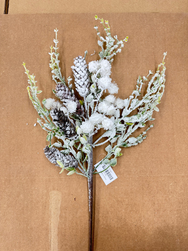 25" Snow Thistle & Pinecone Spray – Frosted Winter Greenery | 21182