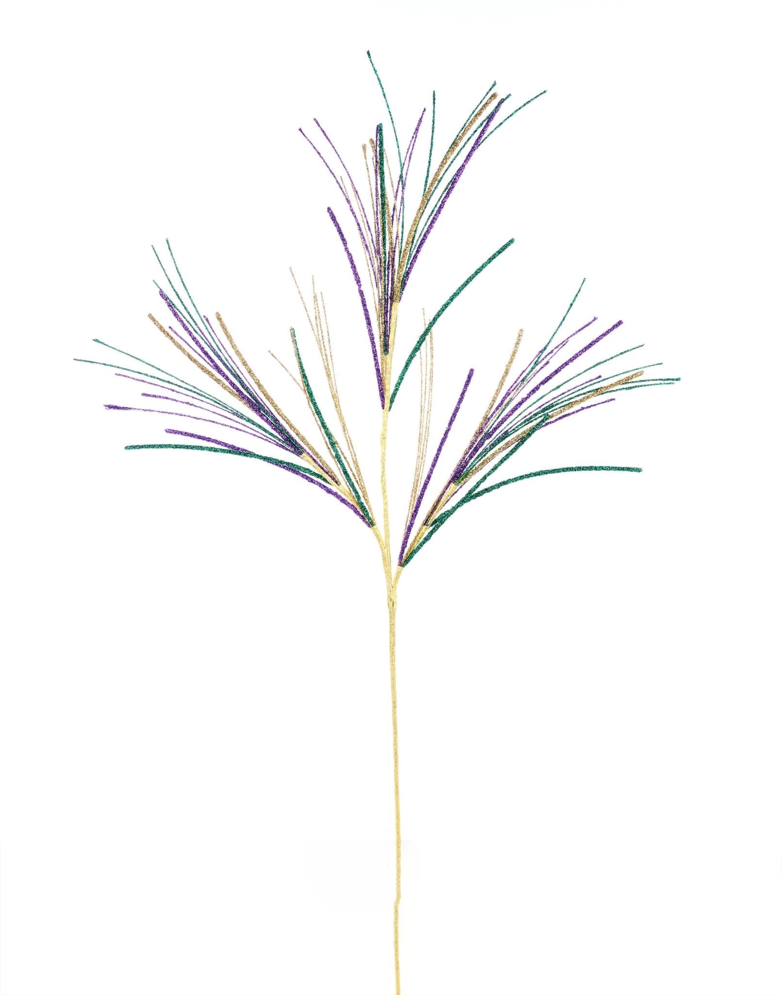 Add dramatic movement, sparkle, and lightweight texture to your Mardi Gras designs with this 31" glitter mini bead fishline spray. Featuring ultra-flexible stems with shimmering purple, green, and gold bead accents, this spray is perfect for adding height, shimmer, and high-impact flair to wreaths, trees, garlands, and centerpieces.