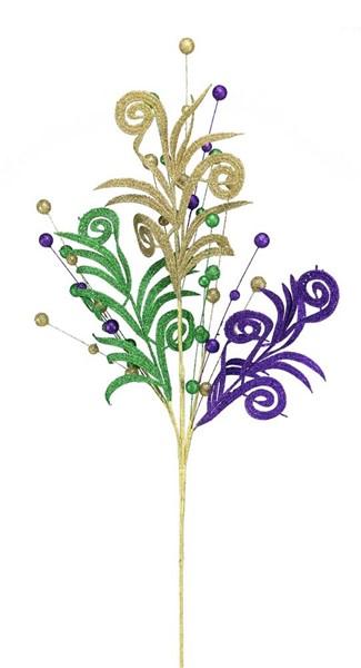 33"L Glittered Styro Ball/Leaf Spray: Mardi Gras - HG3187