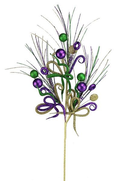 33"L Glittered Tubing Bow Spray: Mardi Gras HG3191