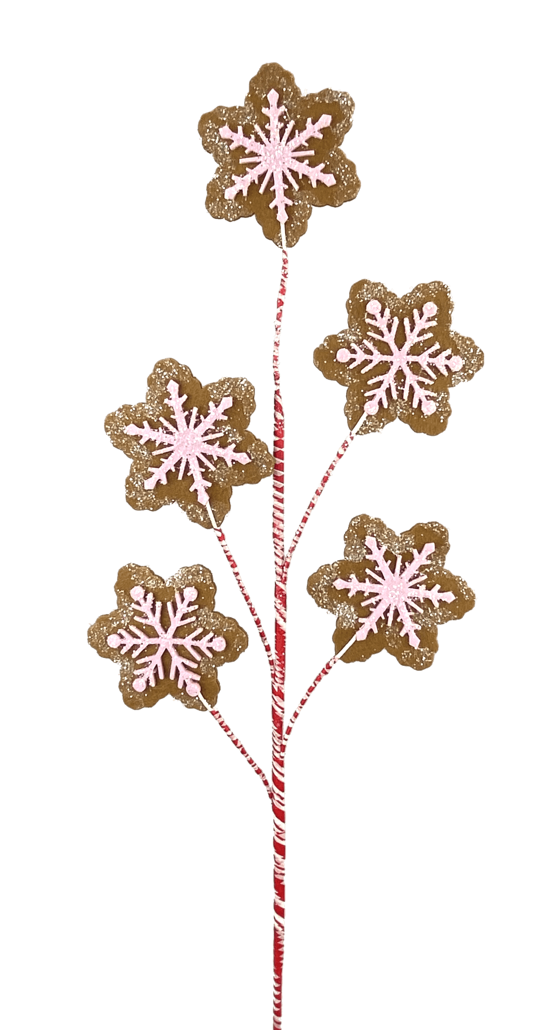 Gingerbread Snowflake Spray with Pink Icing – H28" – 85470PK