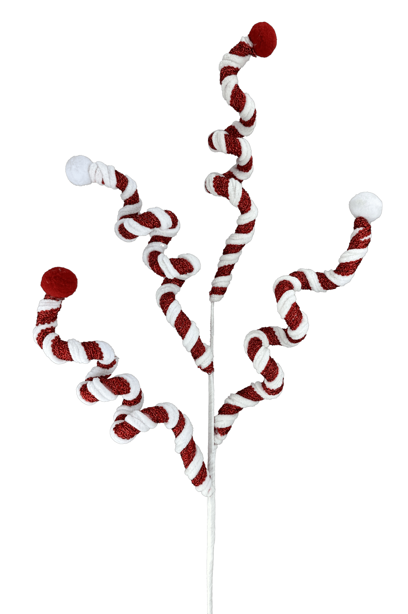 Red & White Curly Spray – 28" Whimsical Christmas Stem (86005RDWT)