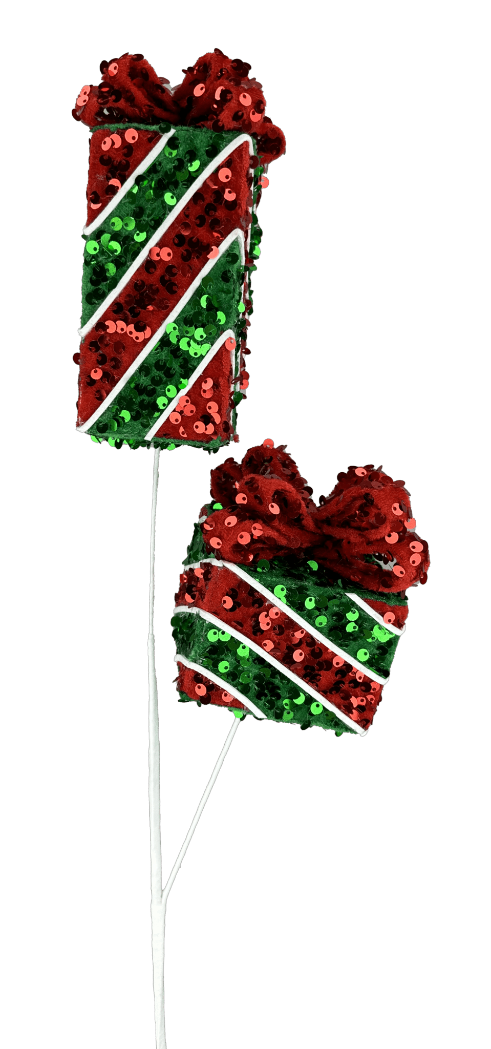 Sequin Gift Box Spray – Red & Green Christmas Picks, 28" (86036RWG)