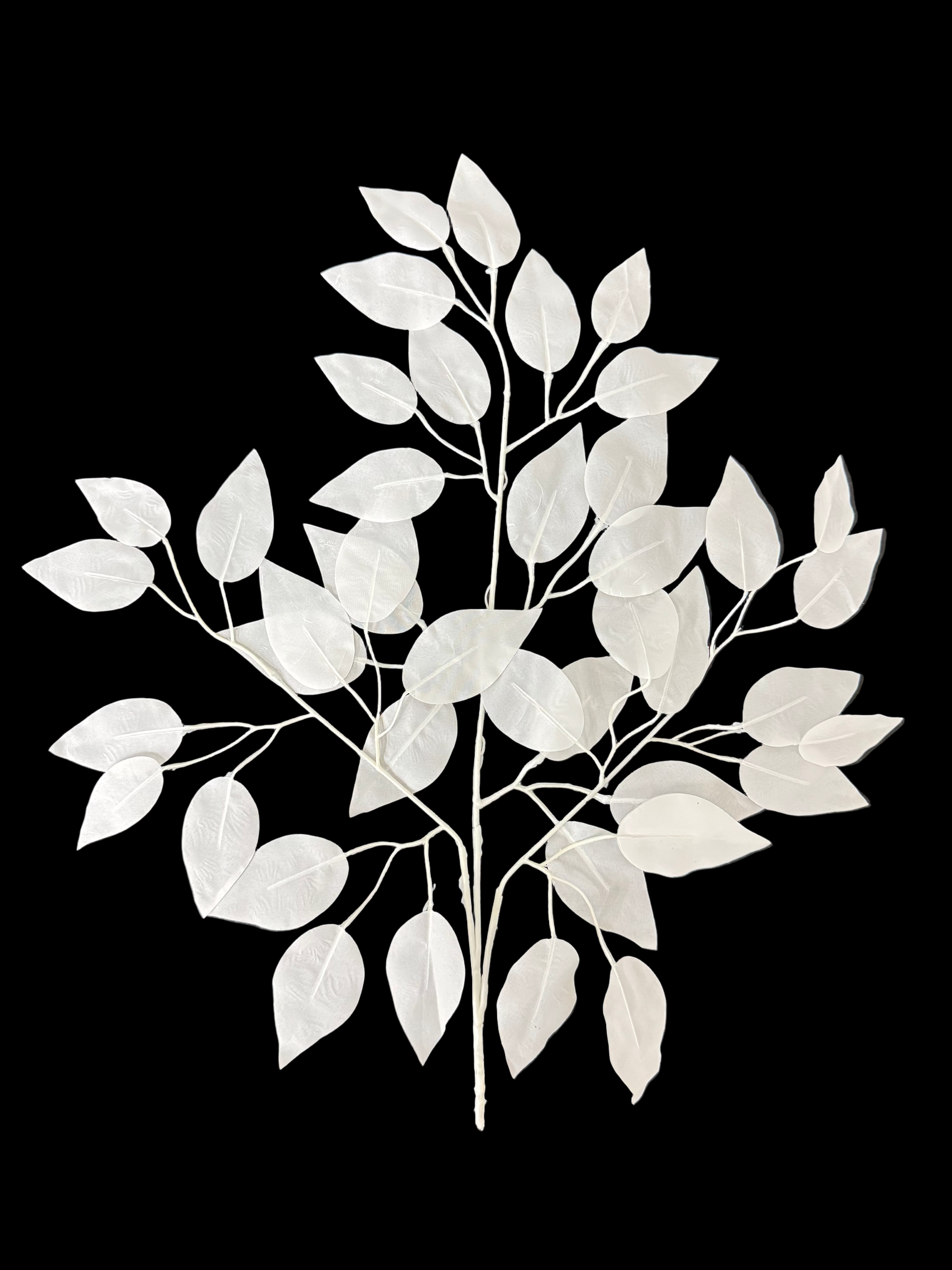 Bring elegance and fullness to your designs with this 21" White Ficus Spray, sold in a 12 pack. Featuring delicate, frosted white leaves on a flexible wired stem, this spray is perfect for wreaths, garlands, trees, and luxe seasonal décor.