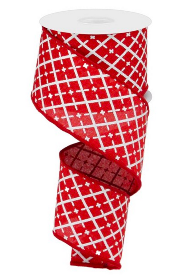 10.5" Snowball Deco Mesh: Red & White (10 Yards) RY820249 - White Bayou Wreaths & Supply