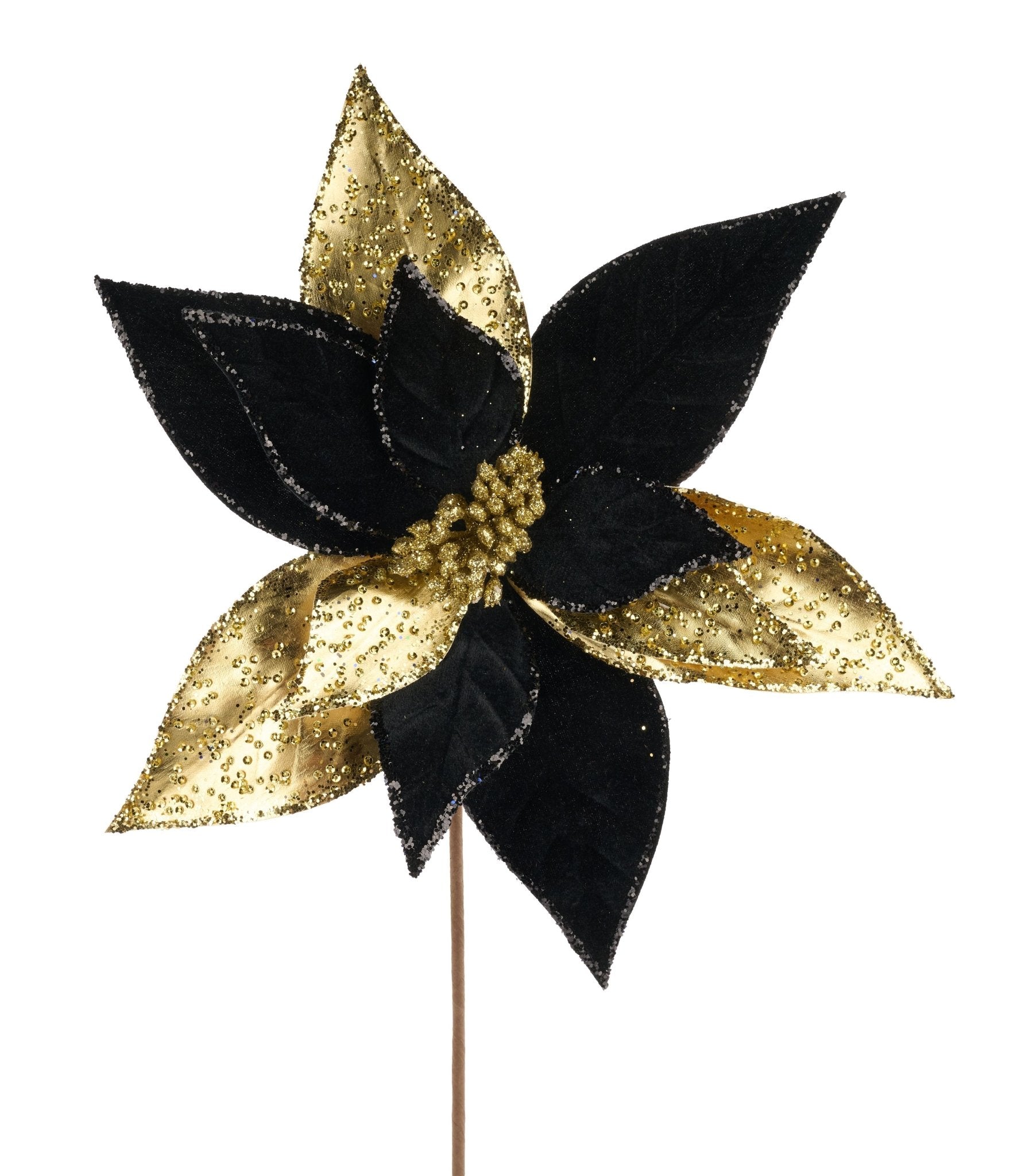 12" Dia Velvet/Met Poinsettia, 22"Oal: Black, Gold | XS415898