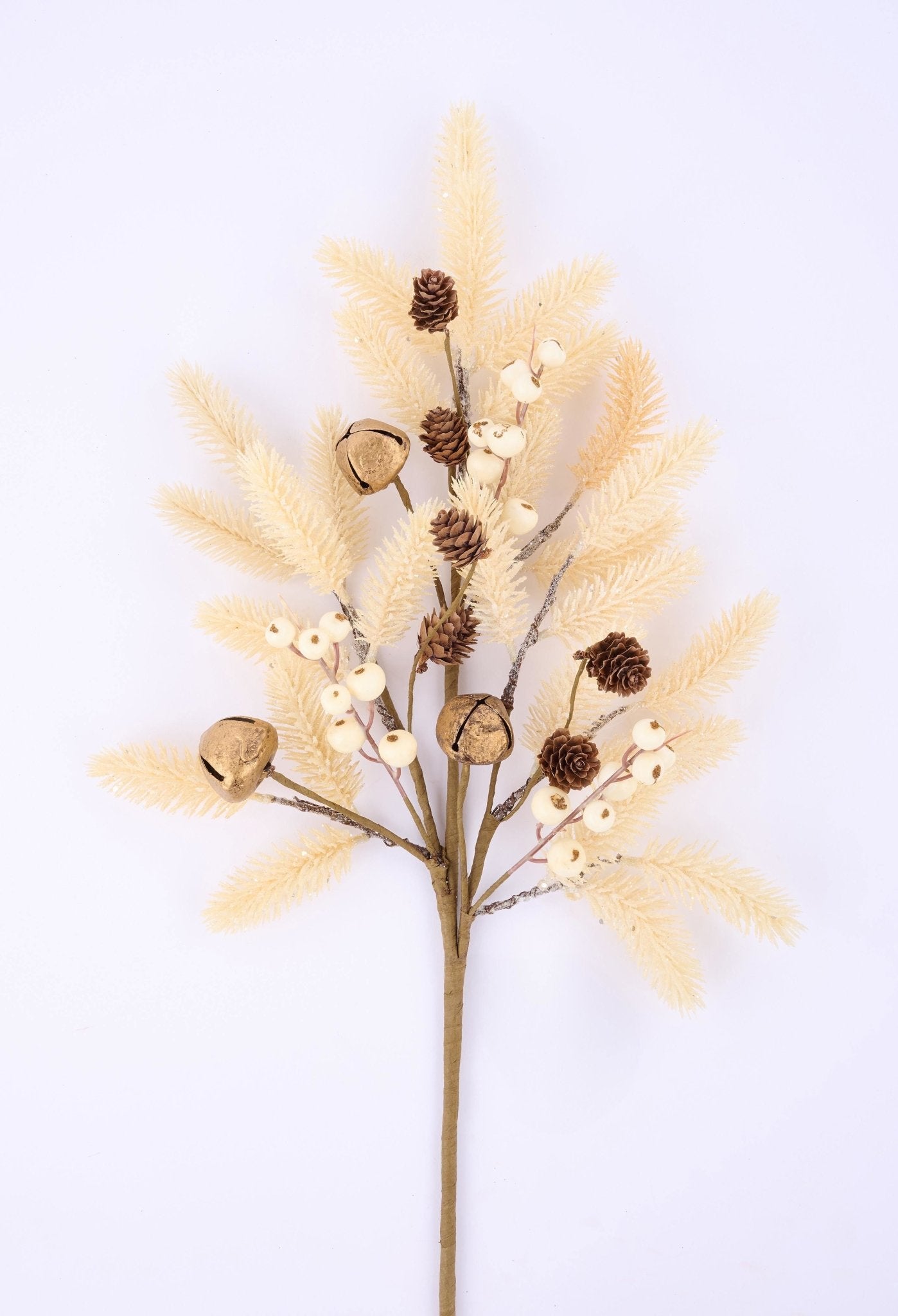 Bring festive sparkle to your holiday displays with this 28-inch glittered spray! Featuring a charming blend of pine, berries, and bells in a soft cream palette, it's the perfect accent for wreaths, centerpieces, and seasonal arrangements. The shimmering glitter catches the light beautifully, adding that extra touch of magic to your décor. Mix and match with other sprays to create custom designs that'll have everyone asking where you found such gorgeous pieces!