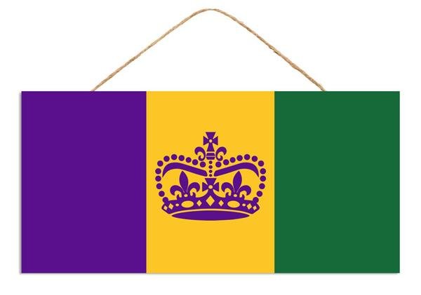 ¡Celebra el Mardi Gras como si fuera un feriado nacional cuando decoras con este letrero de bandera! ¡Esta decoración colgante será una gran pieza de realce para coronas, aunque también destaca como decoración de pared independiente! Con los colores del Mardi Gras en un patrón de rayas, junto con una corona decorativa en el centro, ¡este letrero sin duda llamará la atención por todas las razones correctas!