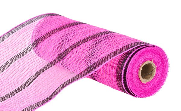 10" Faux Jute Striped Mesh: Hot Pink, Black (10 Yards) RY8337JR