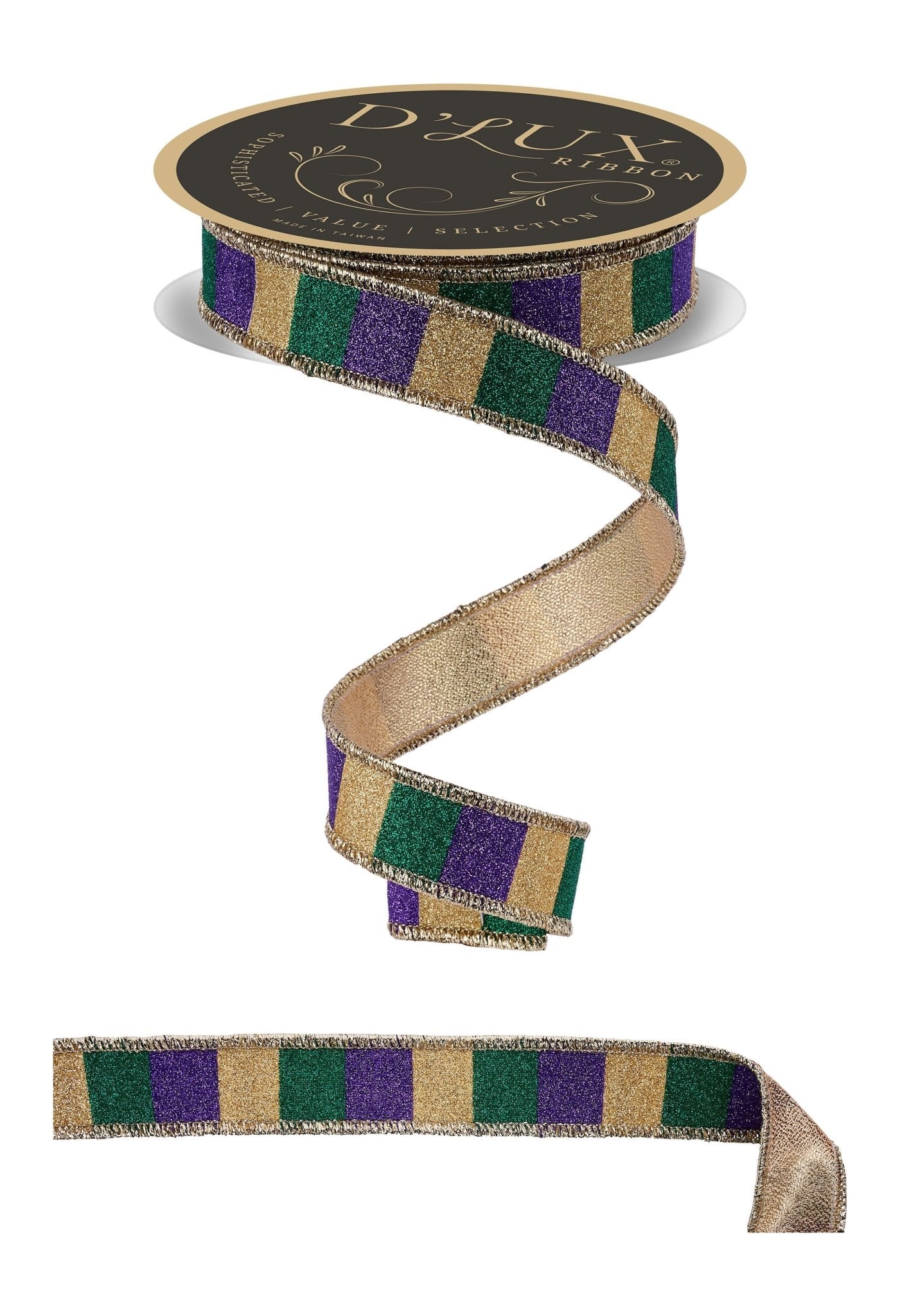 D'Lux 7/8" x 10yd Glitter Stripe/Fused: Mardi Gras | LX3107WY