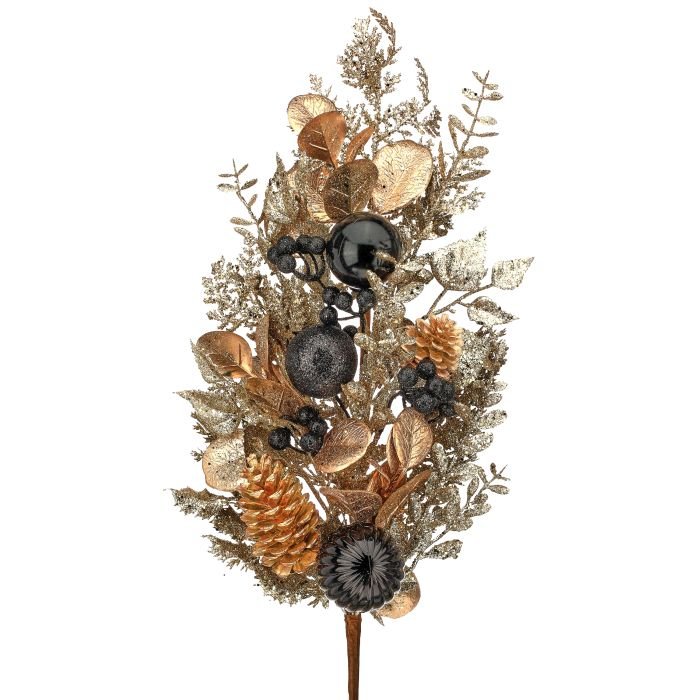 Regency 32" Glitter, Leaf, Berry, Cone Spray: Black / Gold- MTX74074