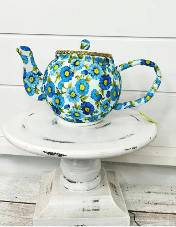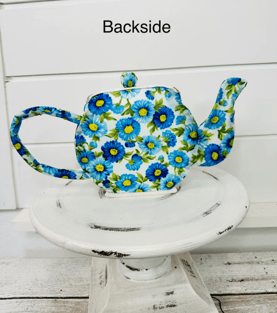 "Ajoutez une touche de fantaisie à votre heure du thé avec notre théière de 6" H x 10" L en blanc, bleu et or. Parfaite pour les projets d'artisanat de Pâques et du printemps, cette théière ludique et charmante apportera certainement un sourire à votre visage. Fait un ajout amusant et unique à une couronne de Pâques ou de printemps. *Dos plat*